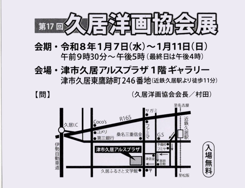 第17回久居洋画協会展(久居アルスプラザ/津市)1月7日(水)~11日(日) 2025年12月17日 by Owner. 第17回久居洋画協会展 (久居アルスプラザ/津市) 1月7日(水)~11日(日) 川西みどりさん、小林俊一さん、高橋秀典さん、山下正則さん、他 前の記事 次の記事
